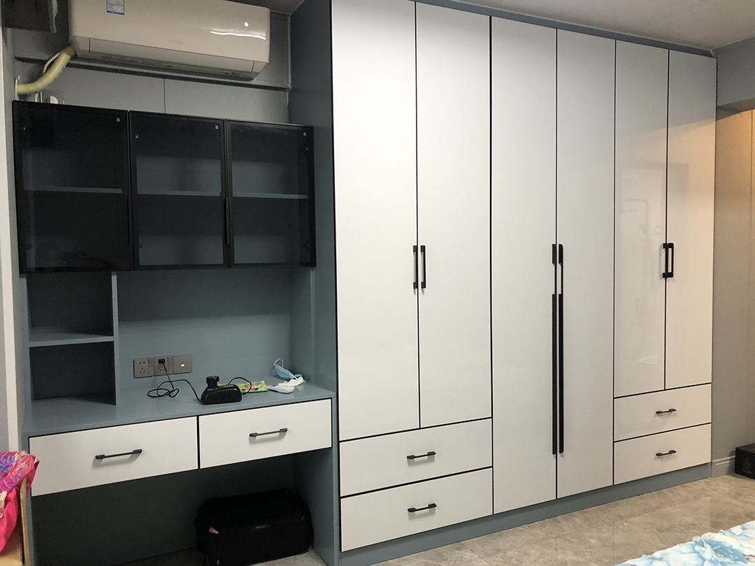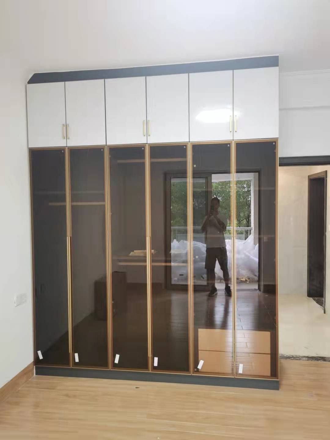 部分專賣店為了展示效果,通常采用無門式的衣柜設計,漂亮衣服整齊的掛在衣柜內,再搭配上各式的包包、領帶等,看起來很美觀,導致很多用戶家里把也設計成了無門式。使用一段時間之后才發現,完全起不到防塵的作用。如果為了追求通透感,可以選擇玻璃柜門。