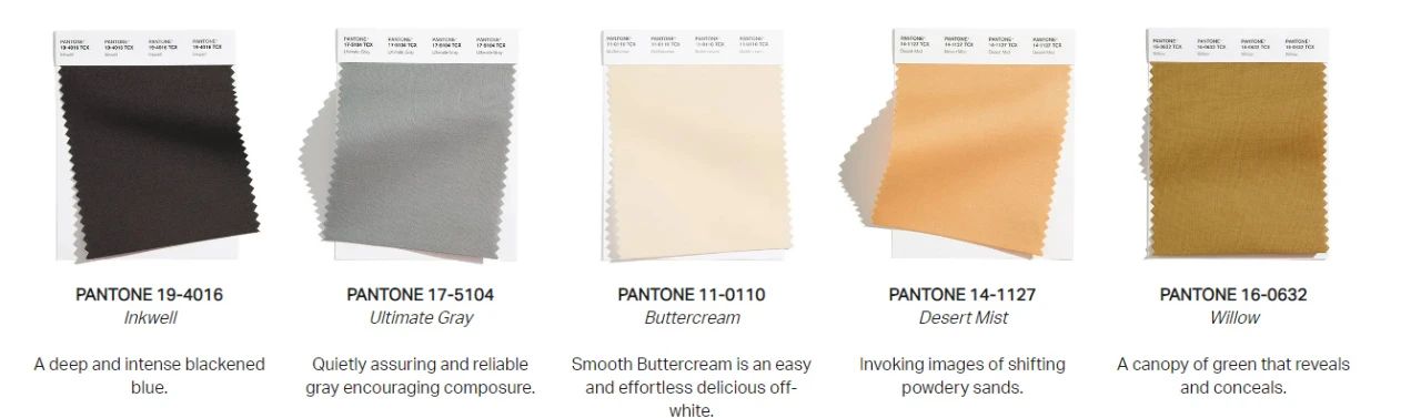 此前,它們發布的一些年度流行色彩,如經典藍、草木綠、靜謐藍/粉晶等,在家具設計,尤其輕奢風格和北歐風格家具品牌中都有不俗表現。這次發布的五種經典核心色,更是家居設計空間的常見色彩。