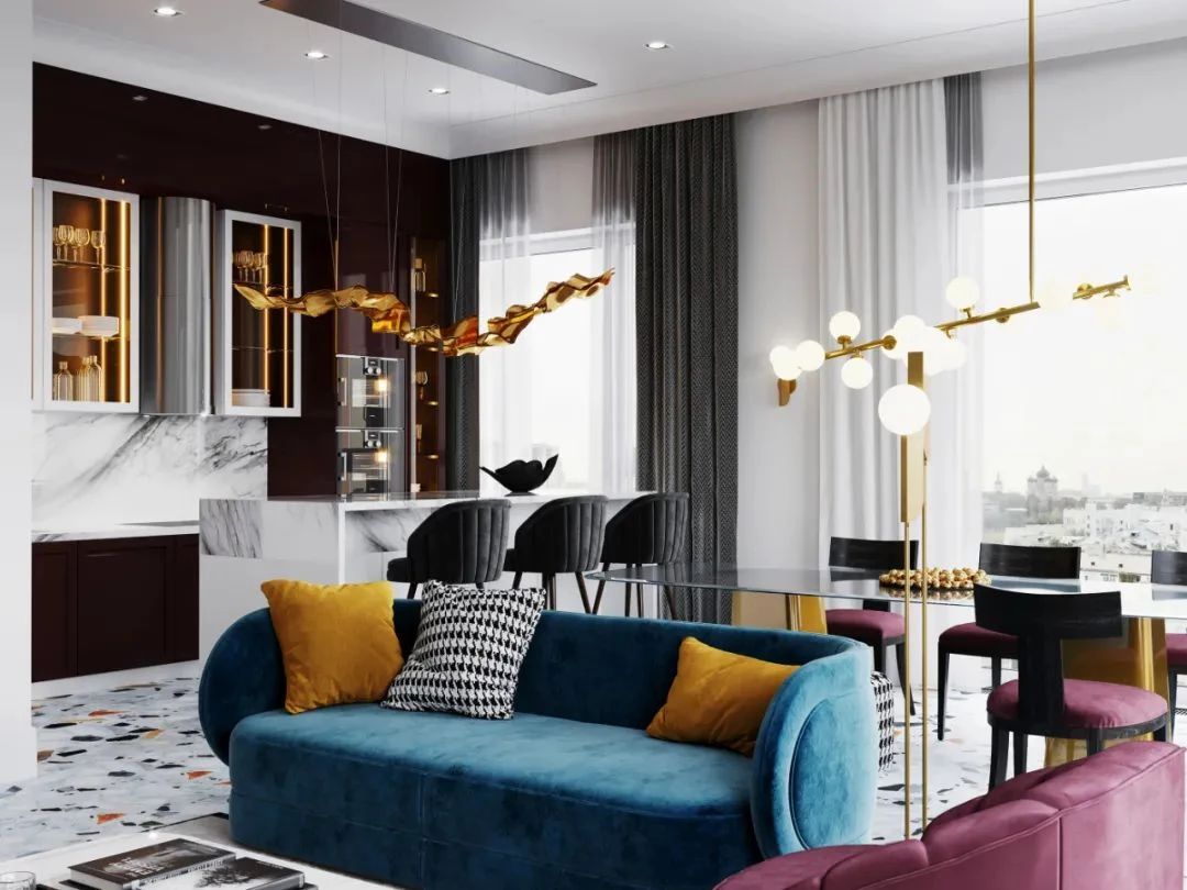 因此,流行色彩不會在家具設計中大量出現,而是常以單品形式存在于家居空間中,起到點睛效果。如白色客廳空間里的彩色沙發,木色收納柜的彩色抽屜等,既能渲染氣氛,又不會喧賓奪主。