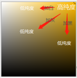 高純度的色彩無論加入白色、還是黑色,純度都會降低。