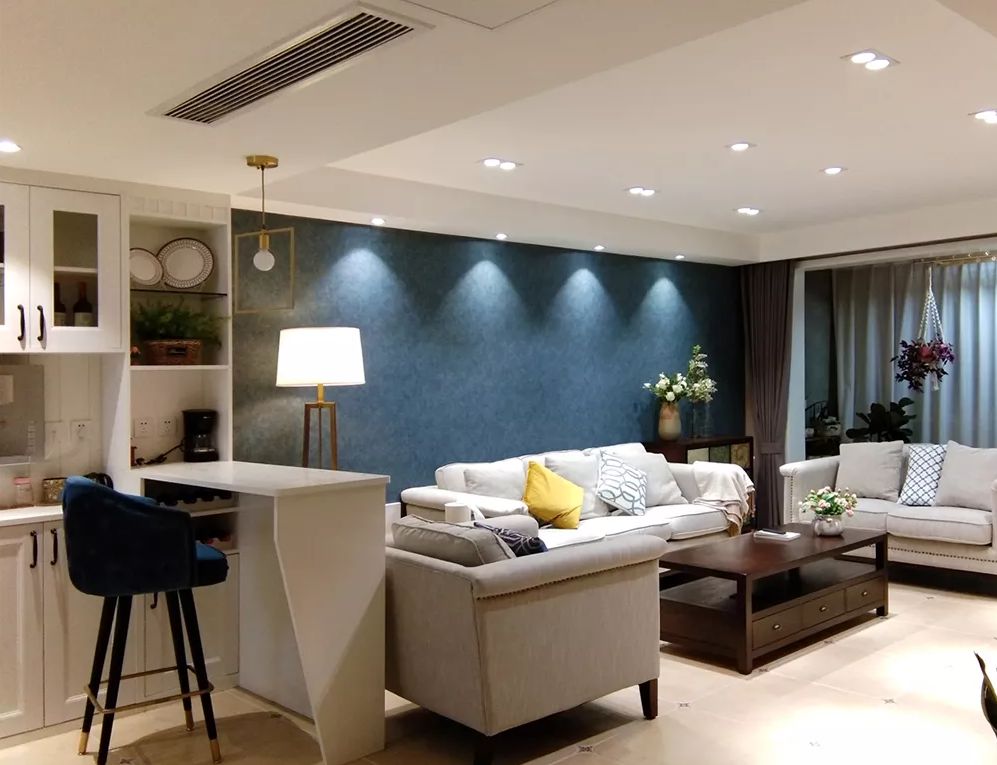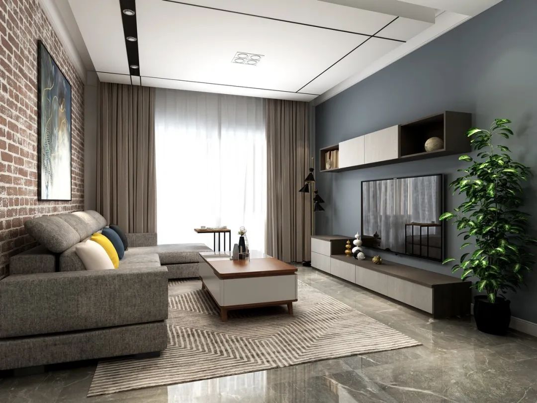 東向、南向客廳光源充足,可采用藍、綠等冷色調;